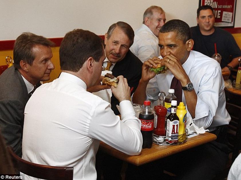 Incluso ha almorzado en alguno de ellos con representantes extranjeros (con el objetivo de ‘suavizar’ la tensión), como por ejemplo con los enviados rusos, incluyendo al presidente Medvédev, durante la crisis de la espía Anna Chapman.