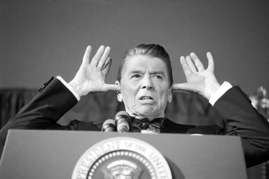 Un incidente bastante peculiar le ocurrió al presidente Reagan durante una intervención en Japón: al soltar una broma que hizo estallar en risa al público y terminada su intervención, Reagan felicitó al traductor por haber interpretado tan bien el sentido de su chiste. Este un tanto incomodo, le contesto: “Pero señor presidente, yo no he traducido nada. Simplemente les dije que había contado un chiste”